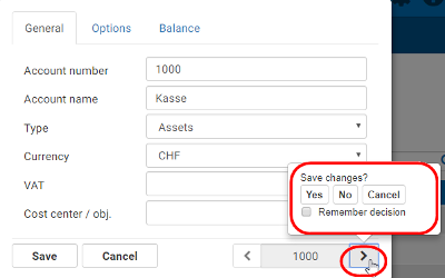 | Confirmation required before booking | Activate this option if you want a confirmation from the user before posting to this account. This is ideal for the user to get increased attention from the user when booking on a special account. This enables you to avoid incorrect postings to accounts that are only posted to very rarely. |